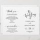 Det här är det folkliga programkortet för ceremonin i bröllop, i elegansskript i temat Black färg. Det är designat med rullans accenttecken som kan vara personlig med anpassningsbar/ personlig för brudens sida, ceremonidetaljer, minnesanteckningar och tack. ** Obs! Dessa pappra textviktsprogram anländer jämnt och kräver vikning för att samlas ihop.