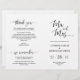 Det här är det folkliga programkortet för ceremonin i bröllop, i elegansskript i temat Black färg. Det är designat med rullans accenttecken som kan vara personlig med anpassningsbar/ personlig för brudens sida, ceremonidetaljer, minnesanteckningar och tack. ** Obs! Dessa pappra textviktsprogram anländer jämnt och kräver vikning för att samlas ihop.