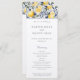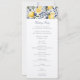 Bröllopsprogrammet Lemon Grove & Blue Azulejo Det här dubbelsidiga bröllopsprogrammet har en uppfriskande citrongrova och blått azulejo-design som perfekt ramar detaljerna i ceremonin i bröllop. På framsidan välkomnas gäster till lycklig-parets bovar, med namn på framträdande plats, och ceremonins fortskridande beskrivs. Baksidan inför bröllopsfesten, från parets föräldrar till tjänstemannen, i ett elegant som kompletterar det ljusa och livliga mönster på toppen och grund. Detta program är en vacker keepé som kommer att vägleda gästerna genom dagens evenemang och tillföra en liten medelhavscharm till tillfälle.