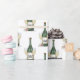 Grönt bröllop champagne med rosa ros, Kärlek och två glas på vitt. Den vita bakgrunden färg kan ändras.