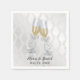Champagneflöjt med vita bögar på elegantens vita dammbakgrund för bröllopsmottagning. Datumet namn och bröllop kan redigeras.
