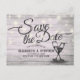 Bröllop Champagneglas i träbelysning Spara datum Meddelande Vykort
