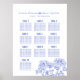 Blå krysanthemumblommor i den vita botaniska planen teckning 10 bord poster. Redigera gästkartan 10 bord med dina gästes namn för din bröllop högtidliga middag. Perfekt för en vit blå temad bröllop-blommigt, bröllop, förlovning eller årsdag. Sarah Trett har utformat och ursprungligen utformat teckning för www.mylittleedenweddings.com