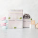 Vit cosmos-blomma på bakgrunden till den rosans abstrakt med Grattisens text.