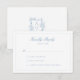 Formellt & elegant dammigt blått blomsterkrön monogram bröllops-RSVP-bifogat kort.