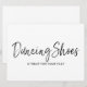 En stilfull, handskriven skylt med "Dancing Shoes"