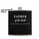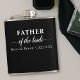Personlig Hip-kolv för Far i Briden. Denna minimalistiska typografi är skriven i elegant och i modern typografi. Mallen namn är inställd på redo så att du kan lägga till briden och gruppens namn och bröllop. Den här designen har en svart och vit färg-palett. Bläddra i vår butik för alternativ färg och samordna keepsakpresenter för din bröllopsfest.