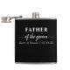Personlig Hip-kolv Far i Groom. Denna minimalistiska typografi är skriven i elegant och i modern typografi. Mallen namn är inställd på redo så att du kan lägga till briden och gruppens namn och bröllop. Den här designen har en svart och vit färg-palett. Bläddra i vår butik för alternativ färg och samordna keepsakpresenter för din bröllopsfest.