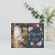 Händelsefördröjd meddelandemall - inbrott i rött marint blommigt för datumvykort. Modern, Elegant, Burgundy Marsala Red Navy Watercolor-Blommigt Ta bort datumfotkortet. Chich burgundy, marsala, persikofärgade vattenfärgsfärgade rosor, botaniska blommigtar arrangemangare bröllop med geometrisk ram på marin bakgrund. Med en handskriven typografisk elegant med texten "Uppskjuten" och ett lodrät foto kan du enkelt ändra den. #3339 Kontakta mig om du behöver hjälp eller matchande artiklar.