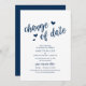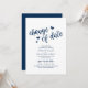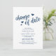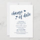Bröllop, datumändring, marinblå, underrättelse inbjudningar