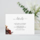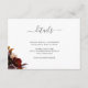 Kort för inbjudan till bröllopsinbjudan i elegant med chicens burgniga och rostiga orange-blommigt och ett trendig-skript på en vit bakgrund +++++++ Personliggör det med viktig information som dina gäster behöver känna till om sitt deltagande i ceremonin och mottagningen i giftermål och skicka kortet tillsammans med din inbjudan till bröllopet.