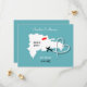 Ett roligt sätt att spara datumet för par som gifter sig i Dominikanska Republiken, Hispaniola med en vit siluettkarta på turkos med söta röda kärlekshjärtan och så enkel att anpassa med era personliga namn och meddelande