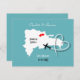 En roligt sparar datumet för par som gifta sig i Dominikanska republiken, Hispaniola med en vit silhuette karta på tårna med sött rött kärlek-hjärtan och så lätt att anpassa sig med ditt personliga namn och meddelande