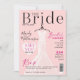 Meddela din möhippa med vår elegant, snyggt och trendigets möhippa-tidskriftsomslag för den brud som ska visas. inbjudningskort för möhippan är designad att se ut som en snyggt och glamorös möhippa. Bilden i möhippa tidskriften innehåller vår handmålade chic, elegant och modernt, helt vita och blek rosa bröllop klädgås. bröllop klänningen hänger på en ornate vintage-stil klänningshängare. Mjuka detaljer om blomman i snöre och gnistor på bröllop klänningen skapar ett vackert, sofistikerat och lyxigt utseende. Massan av tidskriften "The Bride" skapar tidningen namn. inbjudningskort för möhippan är designad för att se ut som text som du skulle se i ett magasin. Alla illustrationer är handritade originalbilder av modelldokument.
