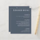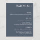 Vi presenterar vår temainsamling "Blue and White" i Bröllop: Modern och elegant som symboliserar den bestående elegansen i lycklig giftermål. Välj det blå och vita temat och fira rikedomen i din kärlek-artikel i alla detaljer. Det här är ett dubbla-sidigt Menu-kort som innehåller dina middagsalternativ och dina drinkar och anpassar det helt enkelt till din speciella dag!