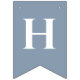 En enkel flaggbanner för ett dusty blue-bröllop, med orden "Herr & Fru" och det nya parets efternamn och 3 hjärtan, allt i vita versaler på dusty blue-bakgrund, förutom hjärtana, som är dusty blue på vit bakgrund.