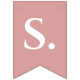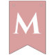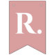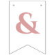 En enkel flaggor banner för en dusty rose bröllop, med orden "Mr. & Mrs." och det nya parets efternamn och 3 hjärtan. Texten är i vita versaler på dusty rose bakgrund, hjärtana och et-tecknet, som är dusty rose på vit bakgrund.