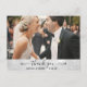 Det här moderna fotovykortet för elegantens typografi kommer att göra perfekten tacksam för ditt bröllop! Anpassa med foto, namn och valfritt datum. Texten placeras över en ljusvit bakgrund. Den andra sidan av vykortet är tom.