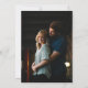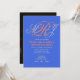 Den här inbjudan till elegant har ett intertwended monogram i skriptteckensnitt i grått och koral på royalets blå bakgrund. Foto är på baksidan.