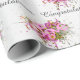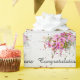 Grattis text med rosa kärlek-tecken i rosa blommor och stänk ram med präglad verkan för bröllop eller årsdag.