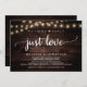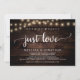 Vacker ingenting fancy bara kärlek fest firande, Bröllop Elopement Tillkännagivande / Inbjudningskort, i Rustik bondgård Trä, Strängljus design. Detta är perfekt för din bröllopsmottagning och efterbröllopsfirande. Lägg till dina detaljer i matchande teckensnitt / bokstäver.