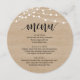 Modern Rustic Brown Wood, String Ljus, Round Plate Fores, Bröllop elopement Middag Menu. En perfekt pub-meny för din stora dag. Du kan ändra skriptteckensnittet färg och ändra menyn innehåll och typsnitt för att uppfylla dina behov.
