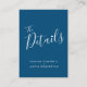 Bröllopsmottagningskort är en del av den passande enkla typografiska hjärtblå vita bröllop-setet. Du kan även använda ett presentkort, ett mottagningskort eller ett kort för behålla som du vill ha eller ett kort för webbplatskort för bröllop genom att ändra anpassadets text på framsidan och baksidan om du vill ha ett bröllop-informationskort efter ceremonin, eller ett kort för information som du får information om dagen och party framför. Ursprunglig design av Sarah Trett för www.mylittleedenweddings.com på zazzle.