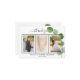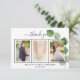 Lägg till 3 av dina egna foton och tack för din anteckning. En klassisk vit bakgrund med svart text och ram, eukalyptus. Texten: Tack på framsidan och namnen på baksidan skrivs med ett snyggt-handskript med dekortecken.