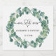 Vit bakgrund, svart text. Dekoreras med en grönt eucalyptus andedräkt. Mr och Mrs med hjärta. Anpassa och lägg till namn och datum.