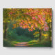 Ett foto av ett vibrerande maple träd i en skogsröjning. Träd löv övergår från ljusa gröntar till eldstridiga röda nyanser, orange och gult, och fångar det gyllene ljuset från den sena eftermiddagen sol. En varsamt vridning av väg, täckt med fallande löv, leder in i bildens bakgrund, tillsammans med suddiga silhuetter av annat träd. Mjuka solljusfilter genom kanopin, skapande skuggor på skogen golv.
