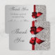 Bröllop Faux Silver Sequins Red Bow Tack Kort