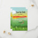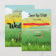 Temat grönt fält och Solskin Spara datumkortet. Ett modernt tema som berättar för dina gäster om vårt bröllop. All information är lätt att anpassa till din information. Namn och data ingår i en bröllop-svit av stationär från just Bra Designer.