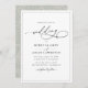 Den här inbjudan till elegant bröllop innehåller en svep-skripttext med kalligrafi parad med ett klassserif & modern sans-teckensnitt i svart, och en frostiserad grönt med blommigt line art mönster & a anpassade monogram. Matchande objekt är tillgängliga.