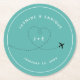 Den här destinationsbröllopet har en flygplan och en hjärtformade bana runt bruden och groomerna namn och initialer på akvatisk bakgrund. Den här designen koordinerar med de andra produkterna i Cabo San Lucas. El Arco Destination Wedding Collection.