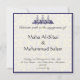 Metalliskt (+$0,55) 110lb täcka-väger metalliskt papper tillfogar en shimmery festlig väderkorn till all din helgdagskort, partyinbjudningar och tillkännagivande för studenten. Kort som är tillgängligt på det normalapapper, för. Ett härligt islamiskt inbjudankort för bröllop eller för förlovning (Katb al-Kitab) med ett arabiskamönster i mörk - slösa färg på bekläda och en arabiskacalligraphy av "Bismillah" på baksidaen. Alla textfält är anpassadet, känselförnimmelse frigör för att tillfoga extra fält, om behövt (klicka enkelt skräddarsy på). Alla kort kommer med kuvert!