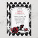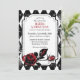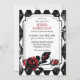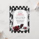 Alice i underlandet inspirerade till bröllopsinbjudningskort. Röntgenutskrift med röd ros drottning av hjärtetemat.