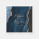 I dessa elegant har de moderna bröllop-blöjorna en marin blå vattenfärgsagat geodebakgrund som trimmas med faux guld glitter. Anpassa dem med parets namn i guld-färgad-handskriftsgrafi över ett stort blått ampersand och bröllop-datumet med typsnitt.