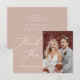 Rosa Elegant Skript Modern Photo Minimalist Bröllop - tackkort. Visa hur tacksam du är för dina vänner och din familj som gjorde bröllop till extra speciell med detta vackra fototackkort från bröllop. Alla texterna är i förväg ordnade så att du enkelt och snabbt kan anpassa dig till din egen ord.