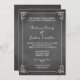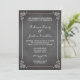 Förvåna dina gäster med dessa eleganta och romantiska bröllopinbjudningar. Designen presenterar en blackboardbakgrund med textuppsättning i bokstäver för kritanågot liknandestil. Vintagestilrullan smyckar elegantly varje tränga någon. Byt ut enkelt tar prov text med din information om bröllop. Söta enkelt med en antyda av nostalgisk chic, gör dessa ska svart tavlastilinbjudan ditt bröllop en trendig och minnesvärd den.