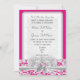 Inbjudan för bröllop för snöre och för fuchsiaen för vit som ändrar den blom- rosa är designad med färgad flickaktigt nätt rosa bakgrund för anpassade den djupa fuchsiaen lätt, färgen till koordinaten med din brölloptillbehör för din speciella dag. Med en härlig bukett av blommor på ett vitsnöreband och buga detta traditionellt, yet den ska moderna nätt kvinnliga designen gör ditt speciella händelsestativ ut.