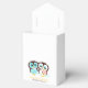 Eleganta och söta bröllopspresenter i form av lådor med vacker och fantasifull illustration av en pojk- och flickuggla.