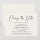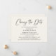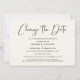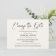 Minimal modern bröllopsutskjutelse elegant ljus kräm tillkännagivande. "Ändra datum" är skrivet i ett stilfullt skript och du kan enkelt anpassa med detaljerna om bröllopsutskjutelsen.