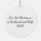 Vår första jul som make och hustru bröllop fotojulprydnad. Lägg till fotot och du kan ändra texten på utsmyckningens baksida.