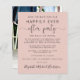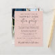 Budgetvänlig rosa spara datum meddelande för en mottagning eller party för att fira er uppgörelse eller bröllop. På framsidan finns "Spara datum för vår lyckligtvis allt efter Party" i enkel typografi och ett skript för elegant med dekorationer, ditt anpassade bröllop-meddelande, party eller mottagning sparar datuminformationen och ditt namn i ett namnteckning skript. På baksidan finns fotot från bröllop, först namn och bröllop och på data.