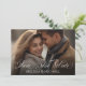 Meddela bröllop i stil med den här eleganten att spara det datum som innehåller en fantastisk fotomall och kalligrafiskript för snyggt. Den enkla typografin och romantiska chicen i avslappnaden skapar en perfekt balans mellan charm och sofistikering. Om du visar ett klassiskt foto stil med minimal textövertäckning, visningar det här dubbla-sidade kortet två vackra bilder. Perfekt för par som vill ha detaljer om minimalistisk snyggt och förenklad elegans för att ange tonen för deras oförglömliga dag!