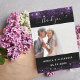 Ett modernt bröllop Tack-fotokort. En svart bakgrund dekorerad med lila faux glitter, gnistor. Anpassa och lägg till ditt foto och tackkort.