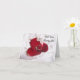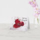 Ett vackert bröllop frieri kort med ett foto av en diamant förlovning ring med ro-petaler.