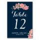 Modern blommigt bröllop bordsnummer-mall med lätta rosor i midnattens marinbakgrund och handskript som typografi. Anpassa den med din gästinformation från bröllop! När du beställer måste du anpassa den och placera den i shoppingvagnen ett efter ett.Bakgrunden färg och texten kan redigeras. Anpassa den efter dina behov efter att du valt alternativet "anpassa ytterligare". Om du vill se hela samlingen går du till: - http://bit.ly/2syhrxh - Kontakta mig om du behöver hjälp. Perfekt för en elegant snyggt modern contemporary-/blommigt-bröllop.