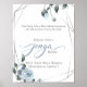 Dammt blå blommor som matchar din bröllopstema, En förfrågan till dina gäster att Vänligen signera en Jenga-bit eller ett block för dina bröllop minnen i gästboken. Akvarellrosor, blad och bär i modern chic dammig blå omger en geometrisk terrariuminramning i silver med salvia grönska. Anpassa text, teckensnitt, stil, färg och storlek. Originalkonst skapad för BarefootBride™ av © WhimsicalArtwork™ - Det här är en del av en komplett bröllopspappersserie med matchande bröllop, baby shower och andra evenemangspapper.