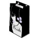 Söt möhippa: presentsäck i skuggor av lila med en stiliserad bröllop-gryna och blommor på svart bakgrund. Ett anpassade som du kan anpassa med egen text, bilder och egna idéer.